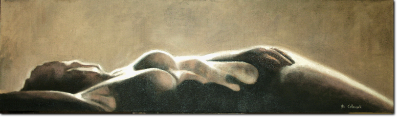 La scelta della figurazione non è affatto scontata o casuale ma risponde alla necessità di catturare attimi di vita sottraendoli al contingente. La sensualità quasi onirica, trasognata, che traspare da alcune pose modellate da un sapiente e sottile gioco chiaroscurale è indice di costante tensione ad una grazia permeata d’amore smisurato per un mondo che nella sua fuggevolezza ci avvince e sempre ci stupisce.